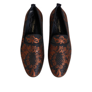 Dolce & Gabbana Black Jacquard Polyester Slip On Loafers Shoes