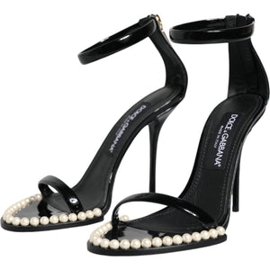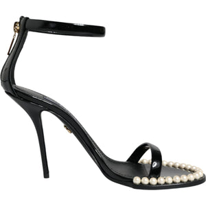 Dolce & Gabbana Black Keira Leather Faux Pearl Sandals Heels Shoes