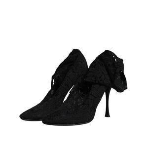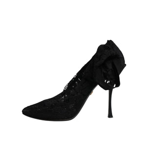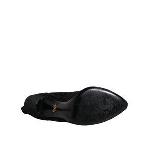Dolce & Gabbana Black Lace Stretch Heels Mid Calf Boots Shoes