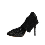 Dolce & Gabbana Black Lace Stretch Heels Mid Calf Boots Shoes