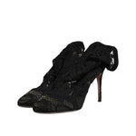Dolce & Gabbana Black Lace Stretch Heels Mid Calf Boots Shoes