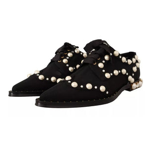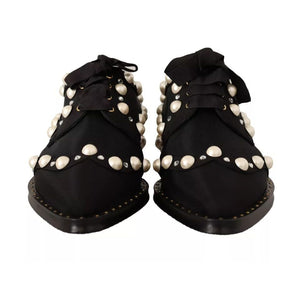 Dolce & Gabbana Black Lace Up Jewelled Formal Flats Shoes