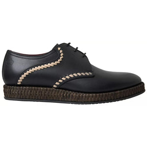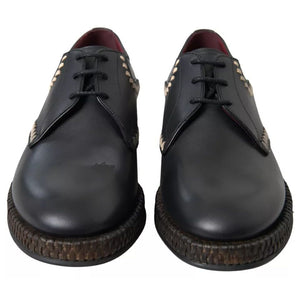 Dolce & Gabbana Black Leather Beige Derby Dress Shoes