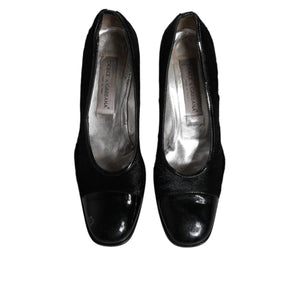 Dolce & Gabbana Black Leather Block Heels Pumps Shoes