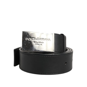 Dolce & Gabbana Black Leather Classic Metal Logo Buckle Belt