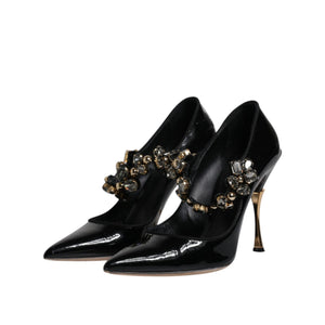 Dolce & Gabbana Black Leather Crystal Mary Jane Pumps Shoes