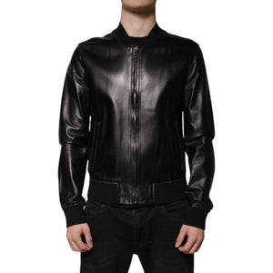 Dolce & Gabbana Black Leather Full Zip Biker Blouson Jacket