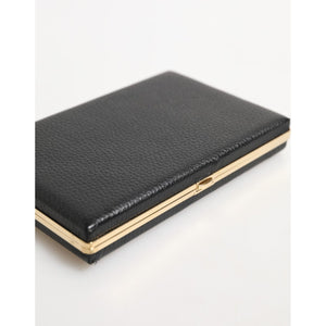 Dolce & Gabbana Black Leather Gold Frame Clutch Evening Party Purse Bag