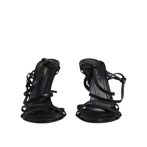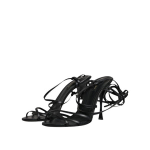 • Dolce & Gabbana Black Leather High Heels Keira Sandals Shoes