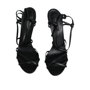 Dolce & Gabbana Black Leather High Heels Keira Sandals Shoes