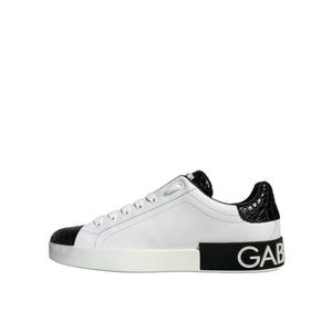 Dolce & Gabbana Black Leather Logo Portofino Sneaker Shoes