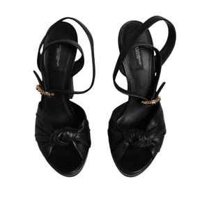 Dolce & Gabbana Black Leather Platform Heels Sandals Shoes