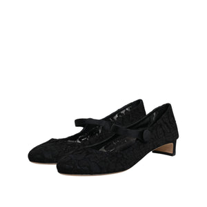 Dolce & Gabbana Black Mary Jane Taormina Lace Pumps Shoes