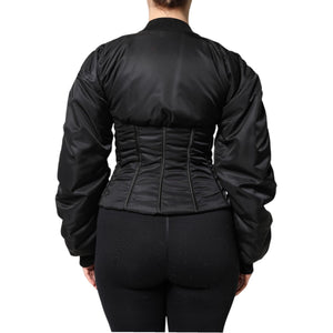 Dolce & Gabbana Black Nylon Full Zip Bustier Corset Jacket