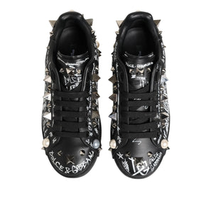 Dolce & Gabbana Black Portofino Stud Embellished Sneakers Shoes