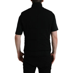 Absolutely stunning, 100% Authentic, brand new with tags Dolce & Gabbana vest jacket featuring black, rayon, logo plaque, high neck, press-stud fastening, sleeveless and two side slit pockets.