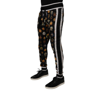 Dolce & Gabbana Black Religious Print Silk Men Jogger Pants