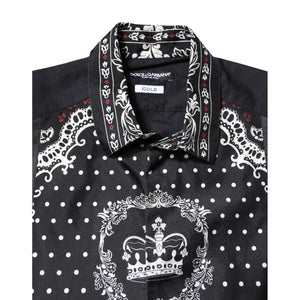 Dolce & Gabbana Black White Bandana GOLD Formal Dress Shirt