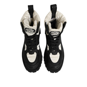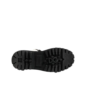 • Dolce & Gabbana Black White Padded Mid Calf Lace Up Boots Shoes