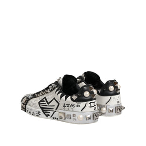 Dolce & Gabbana Black White Studded Low Top Sneakers Shoes