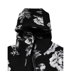 Dolce & Gabbana Black Wool Floral Printed Men Hooded Jacket