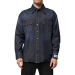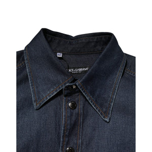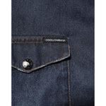 Dolce & Gabbana Blue Denim Button Casual Logo Patch Men Shirt