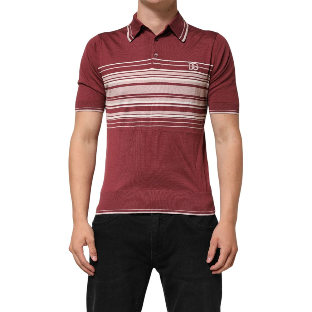 Dolce & Gabbana Cotton Burgundy Striped DG Logo Polo T-shirt