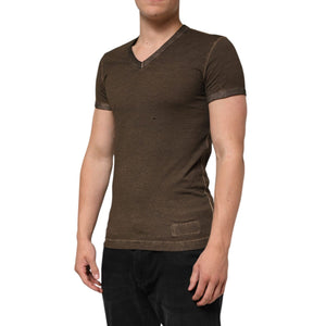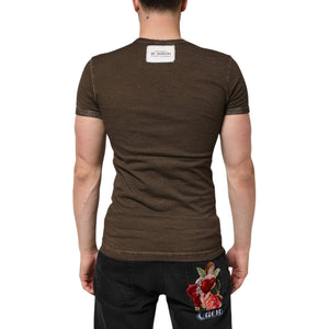 Dolce & Gabbana Dark Brown Cotton Tattered Logo Men T-shirt