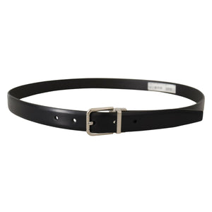 Dolce & Gabbana Black Calf Leather Silver Metal Logo Buckle Belt