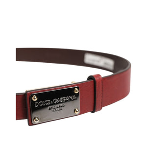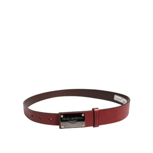 Dolce & Gabbana Maroon Classic Leather Metal Logo Buckle Belt