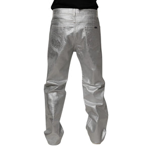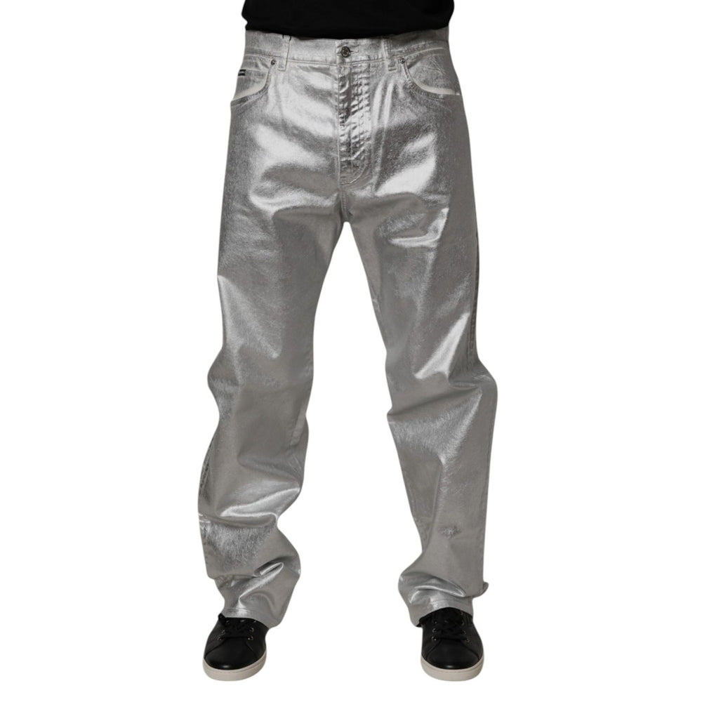 Dolce & Gabbana Metallic Silver Cotton Straight Denim Jeans