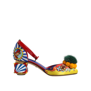Dolce & Gabbana Multicolor Carretto Crystal Fur Sandals Shoes