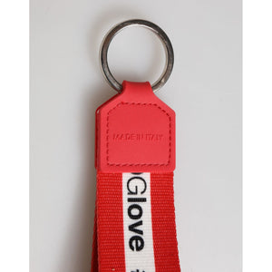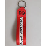 Dolce & Gabbana Red Logo Polyester Silver Brass Holder Keychain Men Keyring