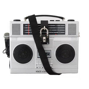 • Dolce & Gabbana Silver Retro Radio Boombox Limited Edition Handmade Wood Bag