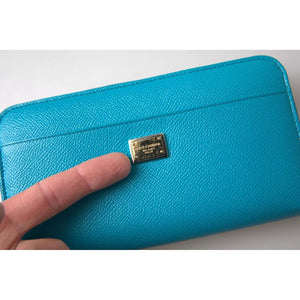 Dolce & Gabbana Wallet Light Blue LOVE Leather Zip Around Continental