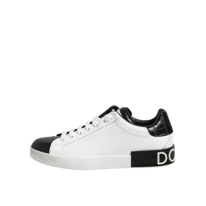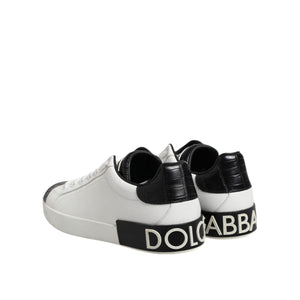 Dolce & Gabbana White Black Leather Portofino Sneaker Shoes