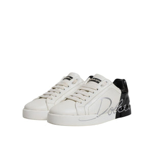 Dolce & Gabbana White Black Logo Portofino Men Sneaker Shoes