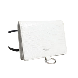 • Dolce & Gabbana White Blue Leather Bifold Crossbody Sling Wallet