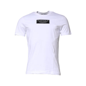 Dolce & Gabbana White Cotton Logo Patch Crew Neck T-shirt