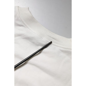 Dolce & Gabbana White Embossed Logo Cotton Crew Neck Sweater