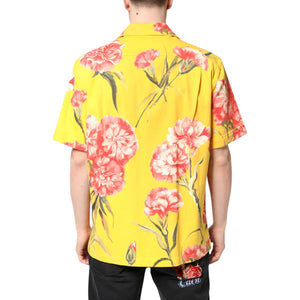 Dolce & Gabbana Yellow Floral Men Button Down Casual Shirt