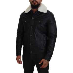 Dolce & Gabbana Black Lamb Leather Collared Men Coat Jacket