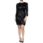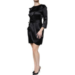 Emporio Armani Black Satin Long Sleeves Wrap Sheath Mini Dress