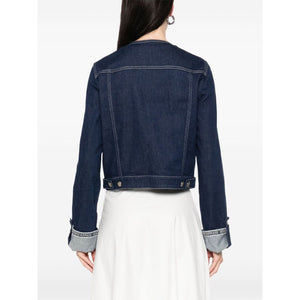 indigo blue front button fastening two chest flap pockets crew neck long sleeves Denim cotton jacket Size and Fit - This piece fits true to size. We recommend you get your regular size. Model is 1,75m / 5ft 8in wearing size 40 (IT)