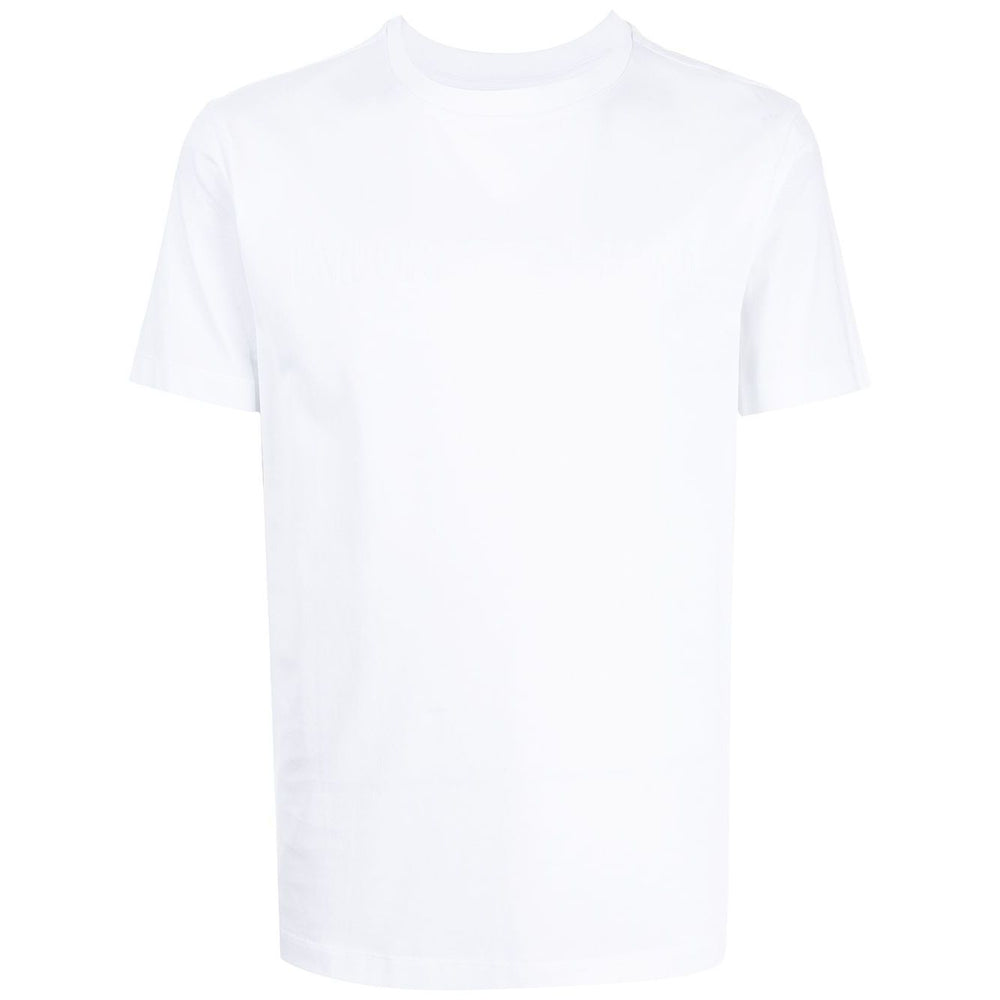 white cotton crew neck short sleeves straight hem Logo cotton t-shirt
