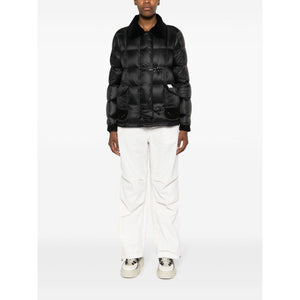 classic-collar quilted down jacket from FAY featuring black, goose down, quilted, padded design, suede trim, logo patch to the front, corduroy collar, classic collar, hook fastening, long sleeves, two press-stud fastening side pockets and straight hem. Nylon down jacket Size and Fit - This piece fits true to size. We recommend you get your regular size. Model is 1,75m / 5ft 8in wearing size S