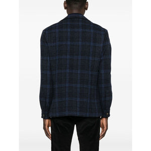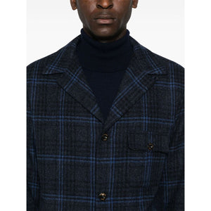 blue virgin wool blend front button fastening check pattern notched collar long sleeves buttoned cuffs chest flap pocket two side flap pockets straight hem Wool single-breasted jacket Size and Fit - This piece fits true to size. We recommend you get your regular size. Model is 1,84m / 6ft 1in wearing size 48 (IT)