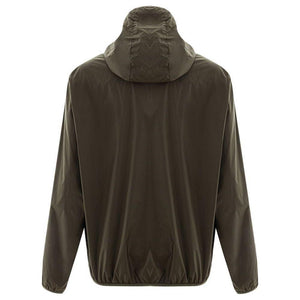 Front closure with tone-on-tone zip, contrasting piping along the zipper, two side welt pockets with zip closures, thin elastic waistband, hood with internal elastic. Internal pocket with closure, contrasting lining with maxi logo, water-repellent technical fabric. Inside the pocket, a branded strap for folding the garment. Composition: 100% Polyamide.