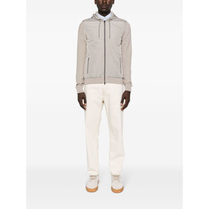 light beige cotton piqué weave drawstring hood long sleeves ribbed cuffs and hem contrasting panel detail two side zip-fastening pockets internal logo tag straight hem front two-way zip fastening Nylon and cotton blouson jacket Size and Fit - This piece fits true to size. We recommend you get your regular size. Model is 1,84m / 6ft 1in wearing size 48 (IT)