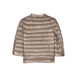 taupe grey goose down padded design collarless concealed press-stud fastening crop sleeves two side slit pockets straight hem full lining Nylon lightweight cape Size and Fit - This piece fits true to size. We recommend you get your regular size. Model is 1,75m / 5ft 8in wearing size 40 (IT)